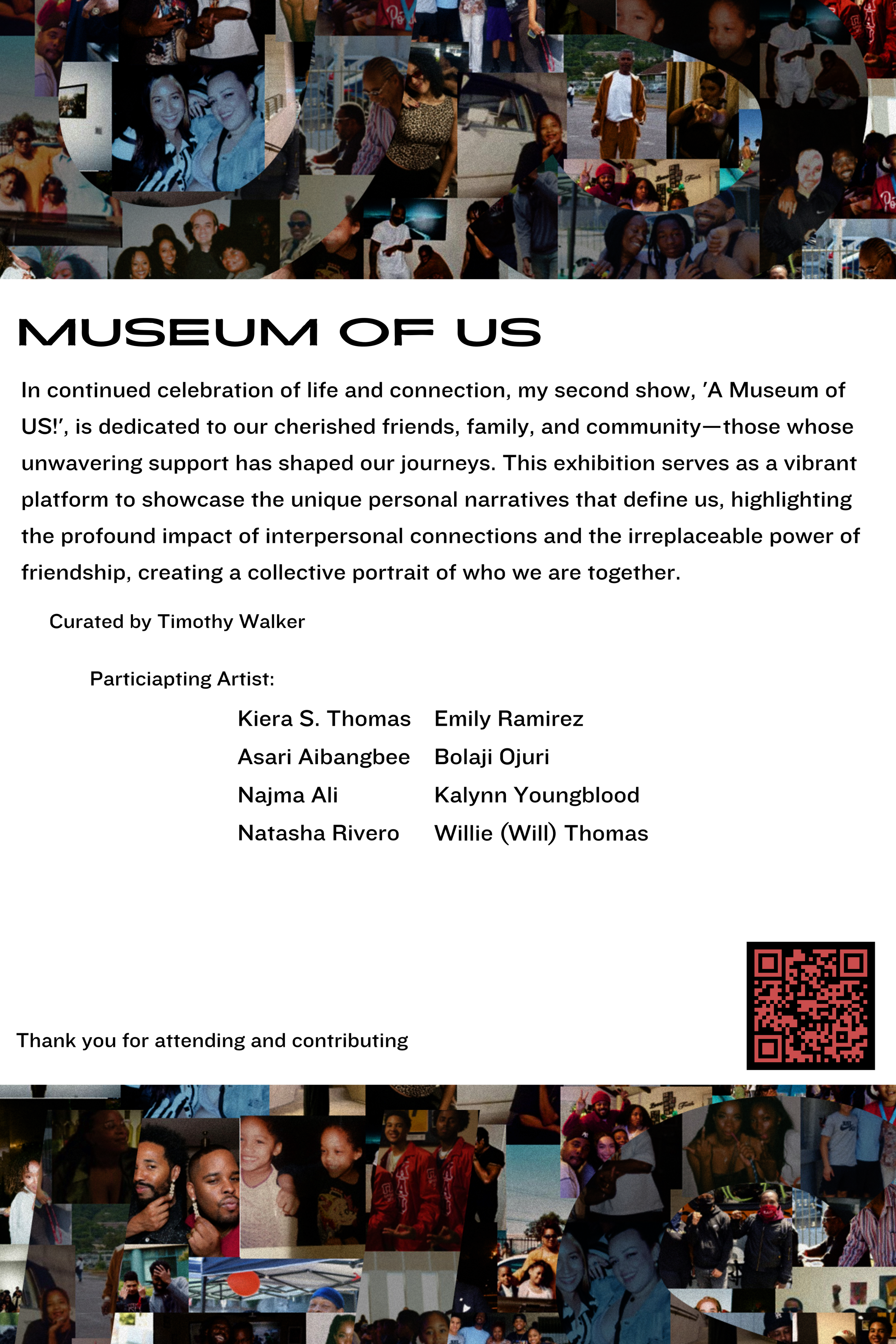 In continued celebration of life and connection, my second show, 'A Museum of US!', is dedicated to our cherished friends, family, and community—those whose unwavering support has shaped our journeys. This exhibition serves as a vibrant platform to showcase the unique personal narratives that define us, highlighting the profound impact of interpersonal connections and the irreplaceable power of friendship, creating a collective portrait of who we are together.